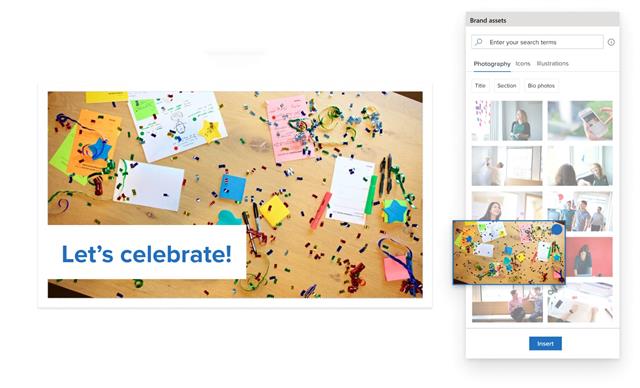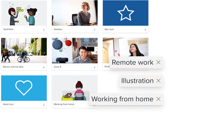 On-brand images and icons accessible to all employees across the digital workplace.