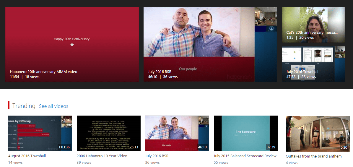 Above is an image posted on our internal video channel, where we post videos of our company meetings so all employees can catch up on company meetings that support transparency at Habanero.