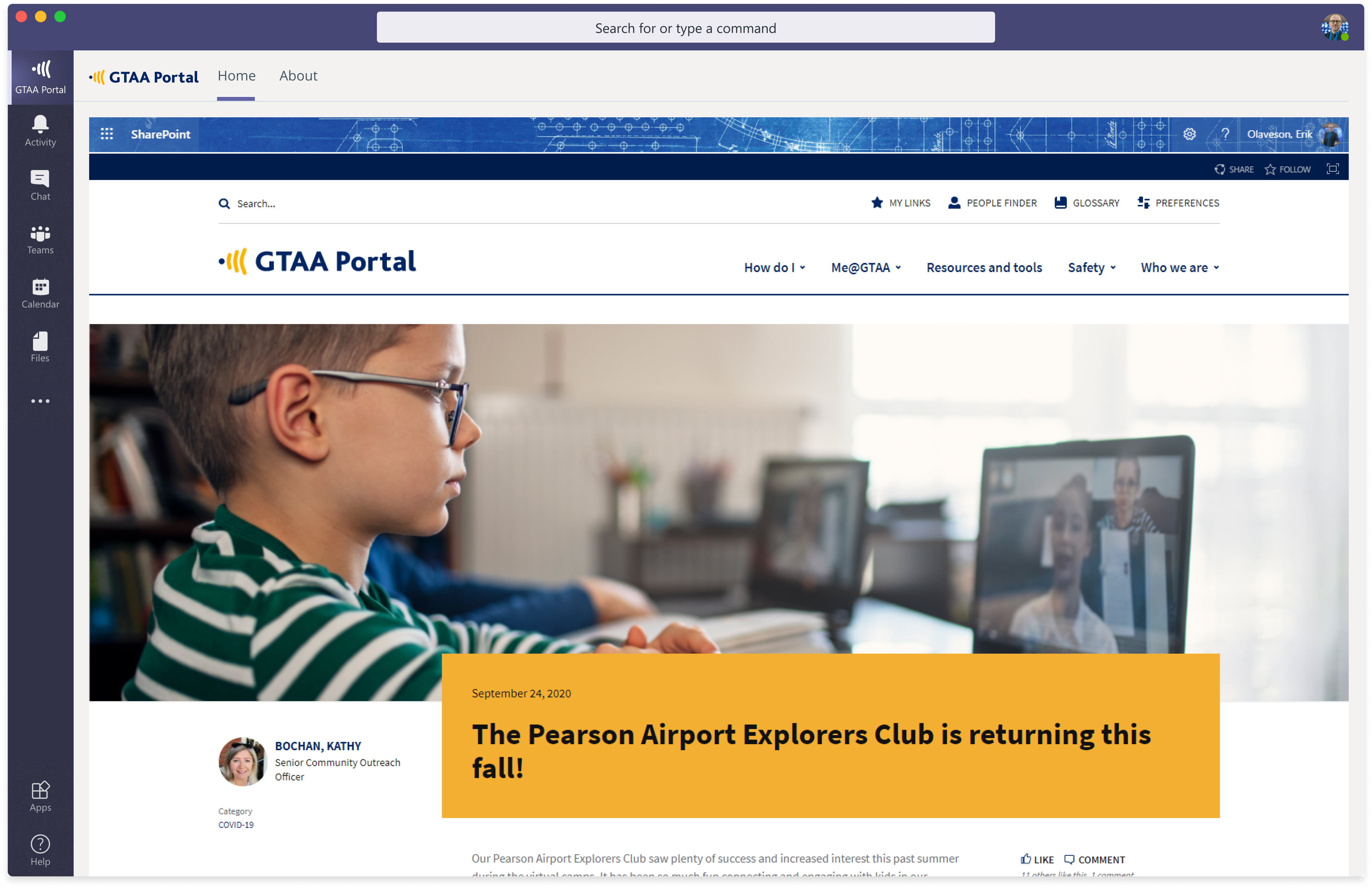 “Employees are increasingly using Microsoft Teams on their mobile devices. With our new GO Intranet Microsoft Teams app your intranet is only one tap away. Employees no longer need to open their browser or another app on their phone to access the intranet.” says Erik Olaveson, GTAA’s manager, digital experience. "With Teams centralizing our employees' digital workplace, we want to bring their experiences and resources to them."