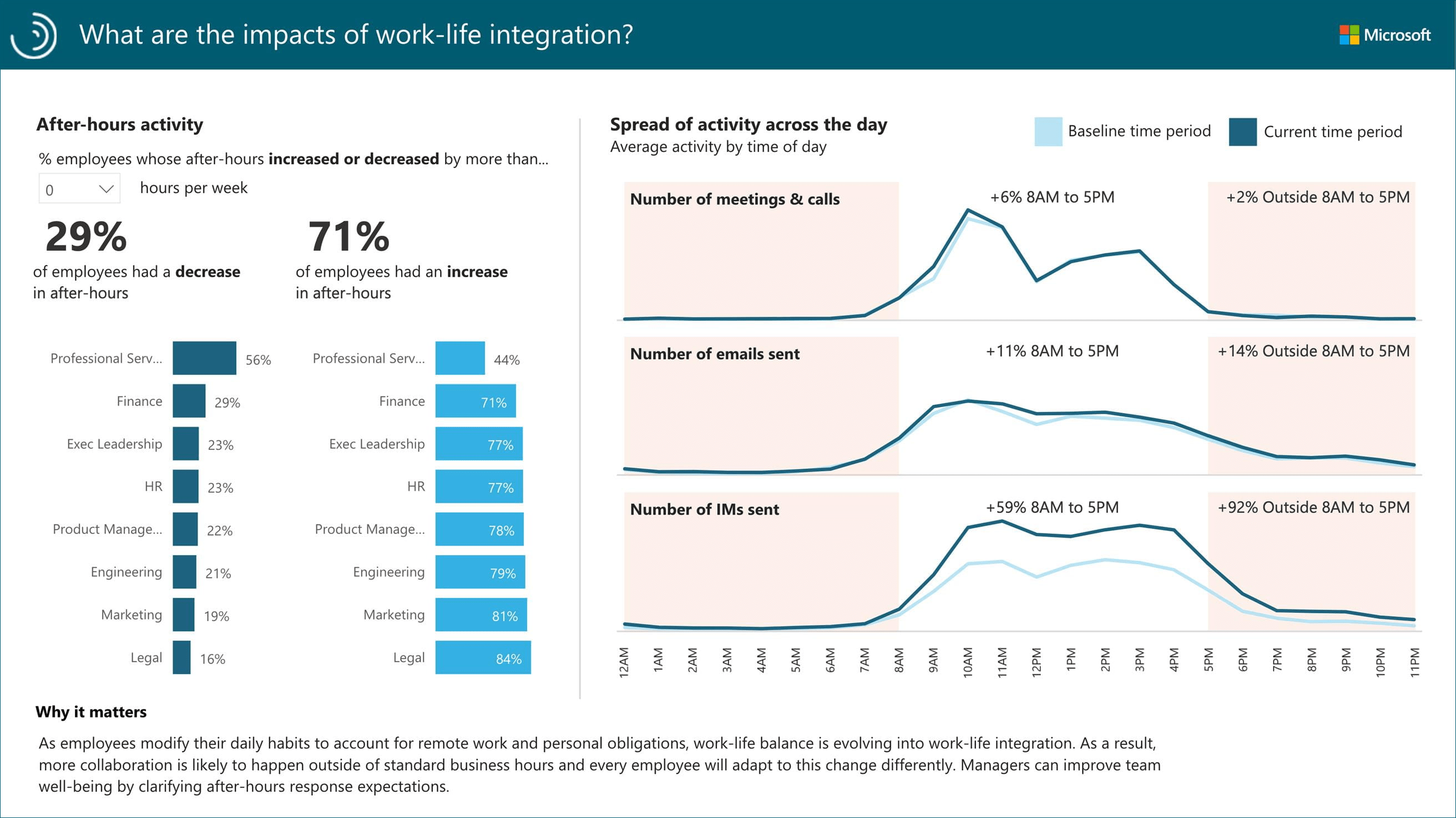 The workplace disruption experienced due to COVID-19 provides an excellent example of how Microsoft Workplace Analytics can help organizations navigate change while ensuring continued efficiency and effectiveness.