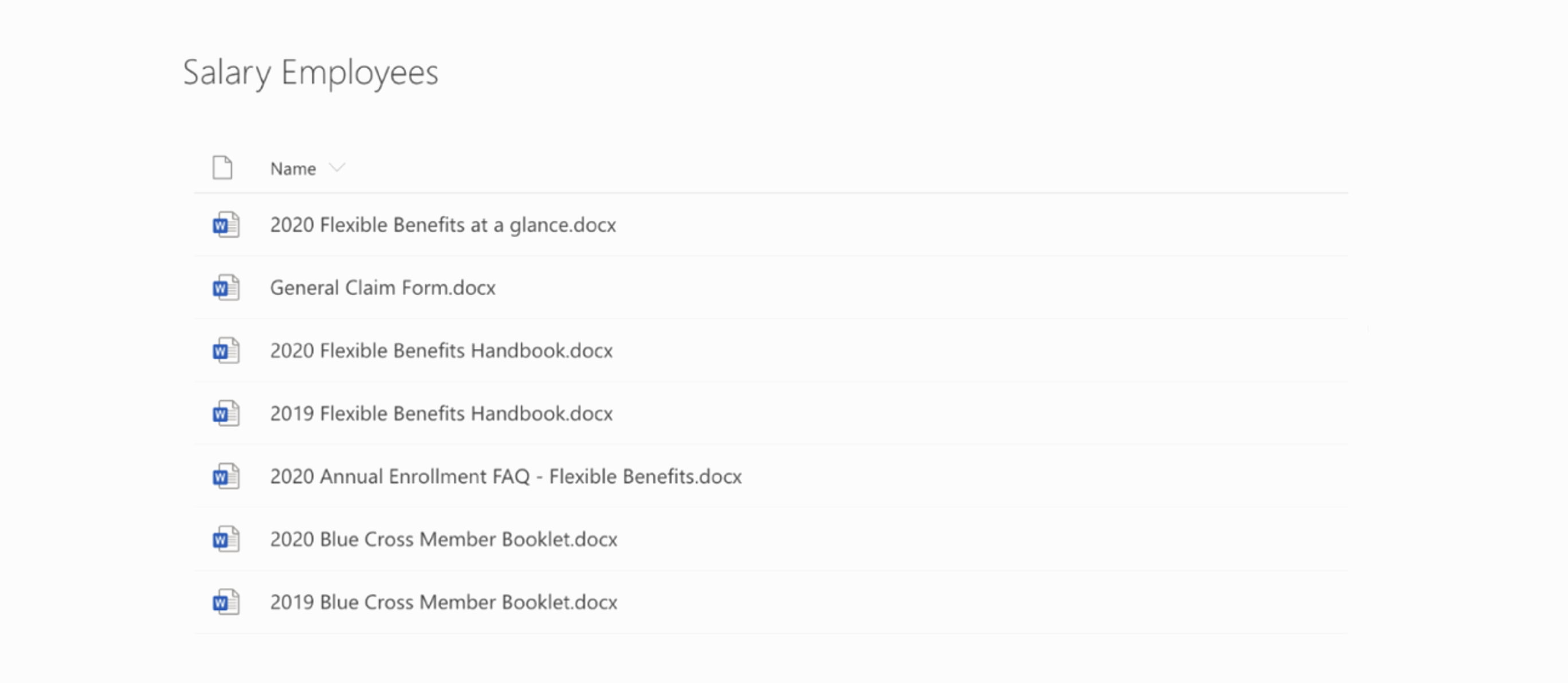 If you have a long list of related resources or documents, you can use the list web part to surface important information. The list web part can be beneficial with longer lists because it allows employees to filter and sort to find what they need.