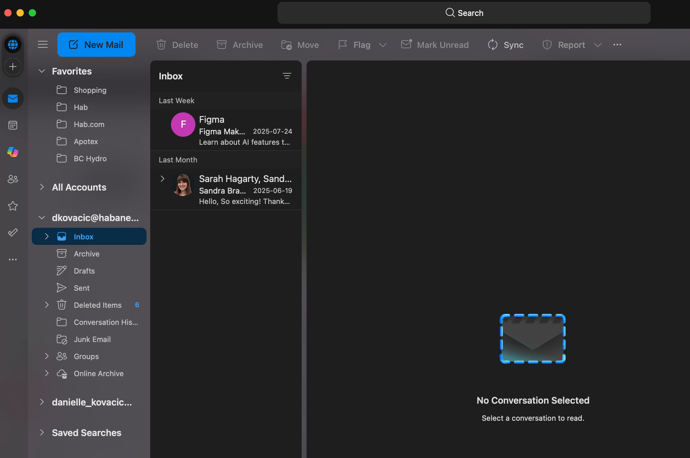 Senior Interaction Designer Danielle Kovacic shared that she primarily uses her inbox as a to-do list. She has a folder for all her projects and once something has been actioned, she moves it into its appropriate folder and favourites whichever projects she’s currently on so that they appear at the top of the left-hand pane. This allows for a more organized email experience and ensures she stays on top of all her ongoing tasks.