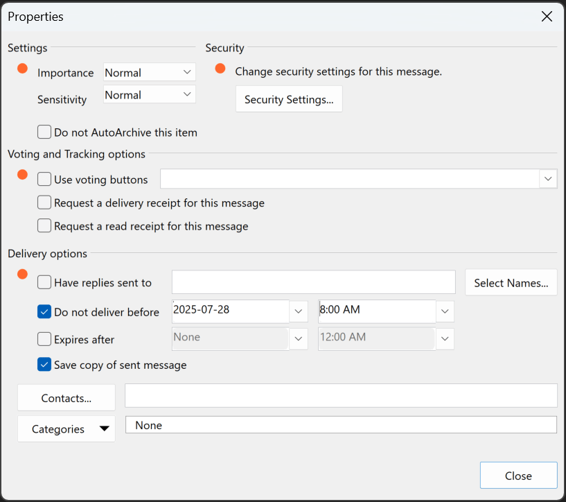 From there, select Do not deliver before and adjust the date and time to when you want the recipient to receive the email.