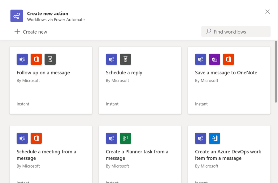 Digital Workplace Consultant Jonathan Plumbley finds a lot of handy uses for Power Automate in Microsoft Teams. By clicking the ellipses beside a message, see the More actions menu, then select Create new action. From there, you can select from some handy Power Automate templates to get going quickly or create your own.