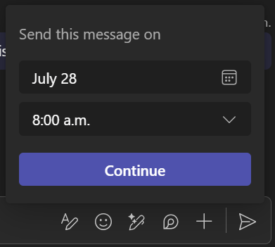 Similar to the “send later” feature in Outlook, you can also schedule Microsoft Teams chats to send at a specific time.