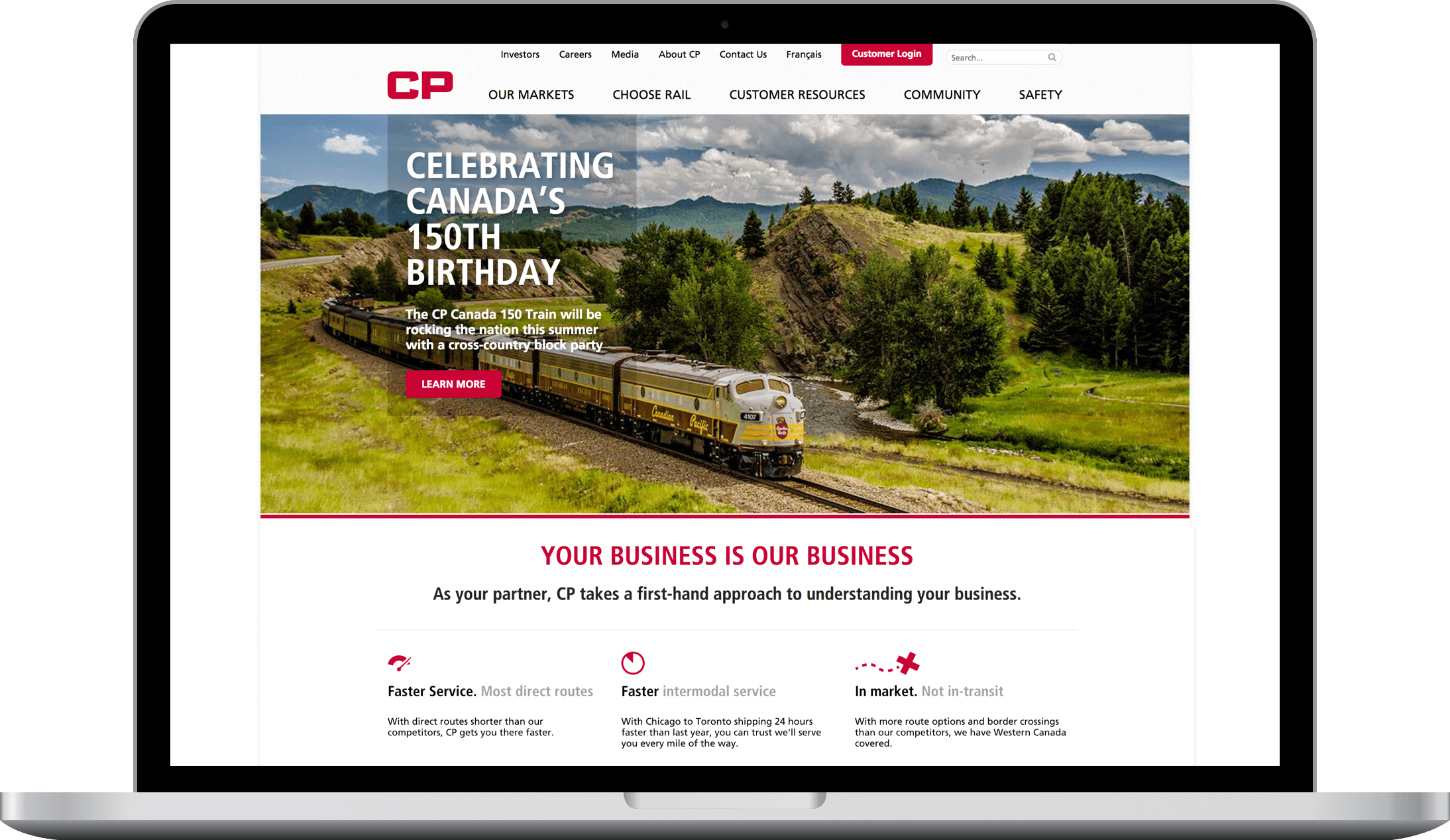 CPR.ca is built on SharePoint 2013 and is an example of a visually rich, fully responsive website and integrated marketing tool. CPR.ca is an enterprise-level customer portal designed with CP’s business in mind.