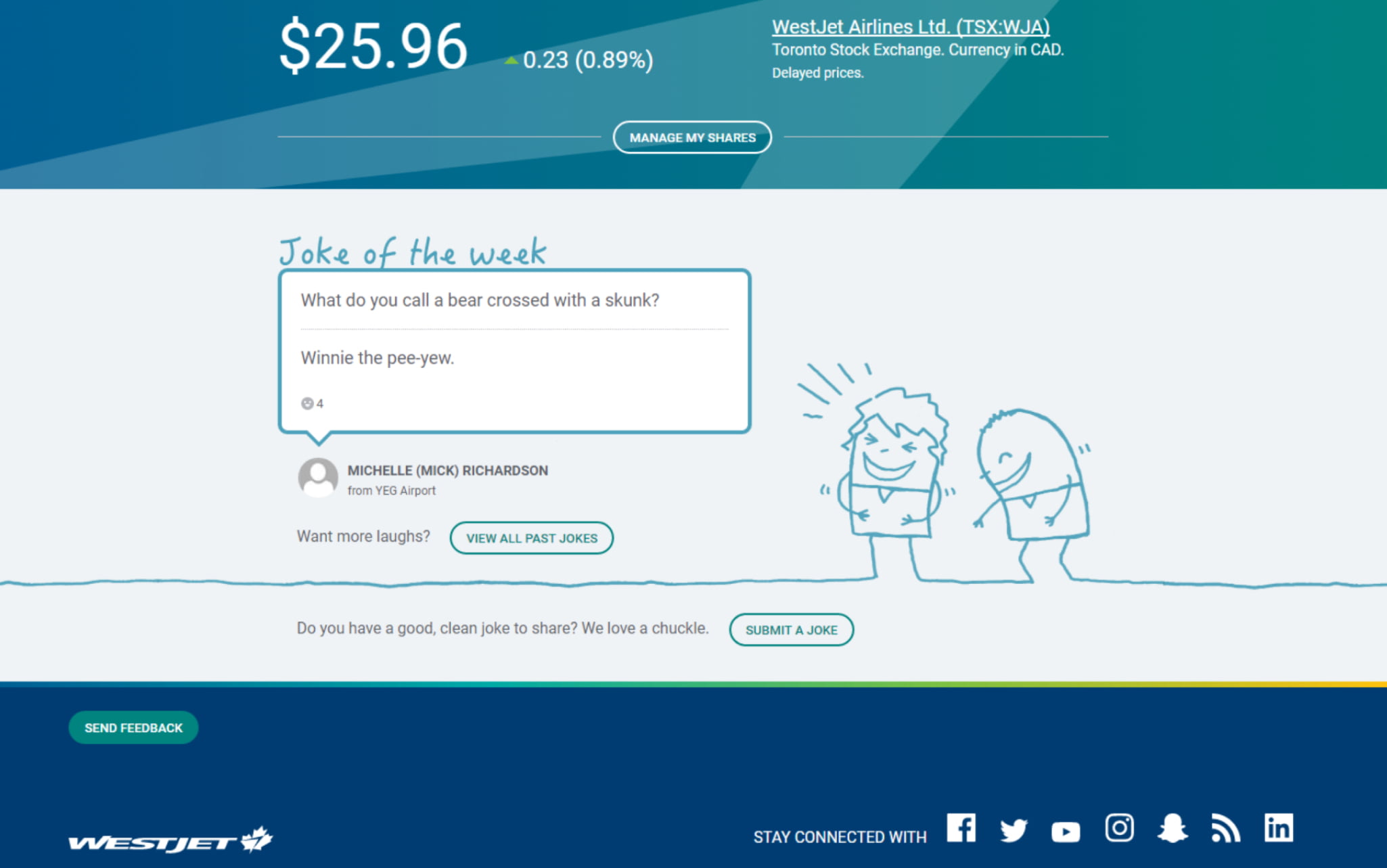 The communications Hub has a submit a joke feature that allows WestJetters to keep up their spirited customer service while in the air.