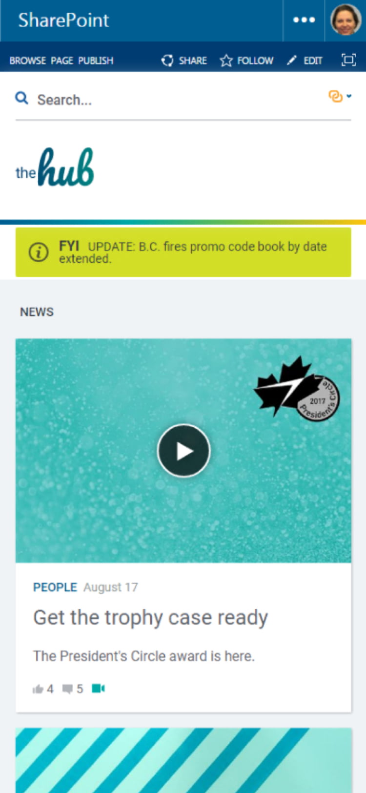 Launched in early August, the site is being evaluated on “the extent to which the integration with Office 365 makes it easier for people to do their jobs,” says Robin. The team will also be closely monitoring news and the increase in awareness of news-related conversations on Yammer. So far, she says, feedback on the portal has been extremely positive. “The consistent comment from employees is that it looks great and makes accessing our news a great experience,” says Robin.